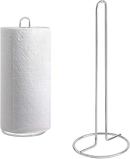 (Chrome with Anti-Slip Base) - BaHoki Essentials Metal Paper Towel Holder for Contemporary Kitchen - Accommodates All Roll Sizes