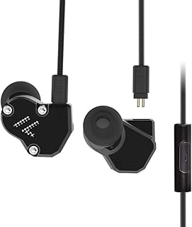 Revonext QT2 2pin イヤホン カナル型 高遮音性 重低音 イヤホン 1BA+2DD 3ドライバを搭載 ハイブリッド イヤホン メタルハウジング 中華イヤホン ハイレゾ対応 イヤホン (ブラック・マイク付き)
