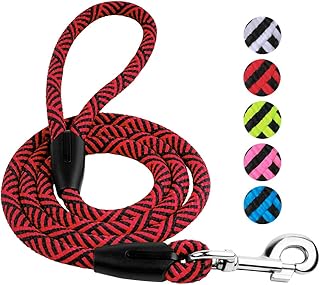 BronzeDog 犬用ロープリーシュ 5フィート 丈夫なナイロン製トレーニングリード ミディアム L 犬用 ブラック ブルー ピンク グレー グリーン レッド L レッド