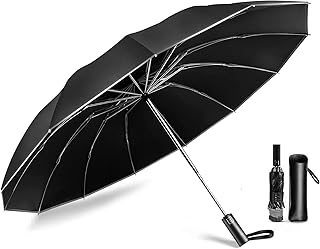 折りたたみ傘 メンズ 【最新昇級強化版・頑丈な12本骨・逆折り式】 折り畳み傘 ワンタッチ 自動開閉 高強度アルミ合金傘骨 反射テープ付き 超撥水 紫外線遮蔽 UVカット 台風対応 梅雨対策 晴雨兼用 106cm超大サイズ 収納ポーチ付き