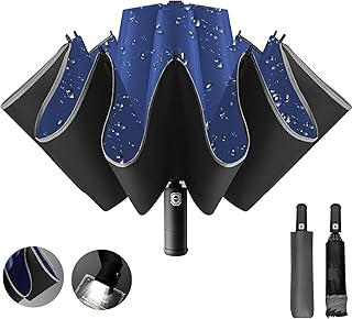 LUCKYDUO 折りたたみ傘 2021年最新版 懐中電灯付き 逆折り式 12本骨 自動開閉 ワンタッチ 超大サイズ 内側収納 夜間照明 軽量 耐強風 超撥水 晴雨兼用 日傘 遮光 耐久 UVカット メンズ レディース 傘 台風対応 ゲリラ豪雨/梅雨対策 収納ポーチ付き 母の日 ギフト プレゼント