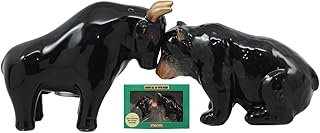 Ebros Wall Street Charging Bull Versus Angry Bear Salt And Pepper Shakers Set Fun Kitchen Dining Bull Matador And Black Bear Ceramic Magnetic Decor Figurines