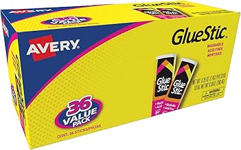 Avery グルースティック バリューパック ホワイト 洗濯可能 無毒 0.65オンス 永久接着スティック 36パック(98023)