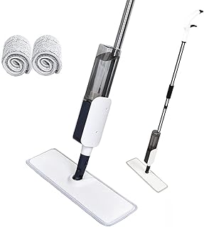 JAMUP スプレーモップ フロアモップ モップ 回転モップ パッド4枚付き 水拭きモップ 窓ガラス用 向上噴水可能 床掃除モップ 乾湿両用 回転式 扇形噴水 500ml大容量 軽量 フラットモップ 360度回転 床拭き 片手操作可能 収納簡単 (フロアモップ)