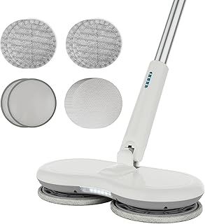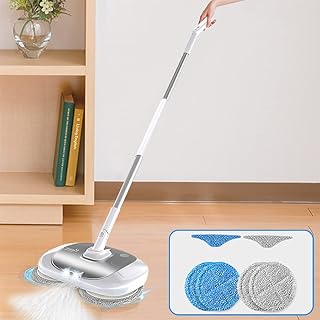GOBOT 電動モップ 回転モップ クリーナー コードレス 充電自走式 フロアモップ 長さ調節可 軽量 床掃除モップ 乾拭き 水拭き 掃除用品 収納簡単 (使い捨てのモップパッド(面ファスナーを含む))