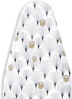 MZXcuin 15インチ x 54インチ パッド入りアイロンボードカバー 焦げ防止 コットンアイロンカバー パッド付き 熱反射 高耐久パッド フクロウ