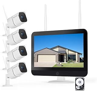 【300万画素・販売年数5年以上】YESKAMO 防犯カメラ ワイヤレス 屋外 wifi 12インチ一体型 増設自由 H.265圧縮 2TB HDD内蔵 IPS液晶パネル 高画質 無線 監視カメラ wifi 300万画素 wifiカメラ 4台 IP66防水 屋外対応 暗視撮影 動体検知 常時録画 家庭用 防犯カメラ セット スマホ/パソコン遠隔鑑賞 アプリ通知 監視カメラ・録画機セット (防犯カメラ4台+8チャンネルモニター付き録画機+2TB HDD)