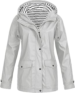 DOSWODE レインコート レディース 防水 レインジャケット 取り外し可能 フード付き ストライプ裏地 ウィンドブレーカー レディース