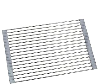 水切りラック 折りたたみ 大きいサイズ 抗菌 丸めて収納 コンパクト 錆びない 省スペース 食器 乾燥 (グレー, 46x22cm)