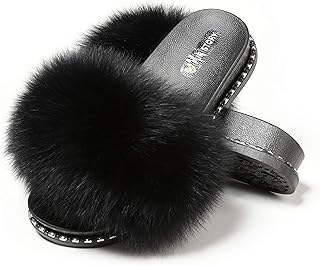 Fur Story レディース フォックスファースライド ふわふわスライドサンダル サマーファースリッパ US サイズ: 11.5 カラー: ブラック