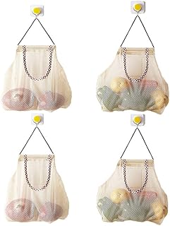 (ハティサン) Hatisan 再利用可能なハンギングストレージメッシュバッグ 丈夫なフルーツと野菜メッシュバッグ 引っ張り防止ストレージトートバッグ ニンニク、ジャガイモ、玉ねぎ、ゴミ袋用 - クリア (4個)