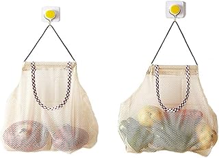 再利用可能な吊り下げ用ストレージメッシュバッグ – Hatisan 丈夫で強力なフルーツと野菜メッシュバッグ/引っ張れにくいストレージトートバッグ ニンニク、ジャガイモ、玉ねぎ、ゴミ袋にクリア