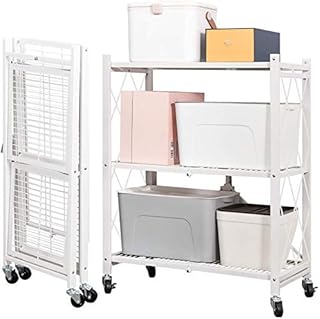 メタルラック 折りたたみ式 オープンラック おりたたみ 簡単収納 組み立て不要 幅71×奥行34×高さ90cm 3段 キッチンワゴン・ツールカート・台車・ワゴン・棚 ラック・簡単収納・キャスター付き