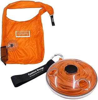 ロールアップ式エコバッグ 買い物袋 ナイロン製 ショルダーバッグ 巻き込み式 5L 大容量 収納 簡単(Orange)