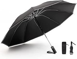 12本骨 & 逆折り式 自動開閉 超大サイズ 折り畳み傘 大きい 超撥水 梅雨対策 紫外線遮蔽 台風対応 晴雨兼用 大きい おりたたみ傘 メンズ 反射テープ付き メンズ傘UPF50+ 210T高強度グラスファイバー 滑り止めハンドル 収納ポーチ付き