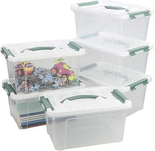 Yarebest クリアストレージラッチボックス ストレージコンテナビン ハンドル付き (グリーン) 6個パック