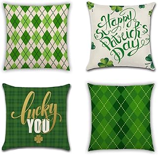 4ピース 聖パトリックデー グリーン 枕カバー 18x18インチ アイリッシュグリーン シャムロック ジッパー付き 聖パトリックデー ホームデコ 友人 母 妻へのギフトアイデア