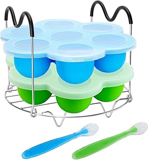 圧力鍋アクセサリー シリコンエッグバイト型 スチーマーラック 五徳 ハンドル付き インスタントポットアクセサリー 6 8クォート 3個 ボーナススプーン2個付き ブルー グリーン 3個