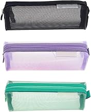 RONRONS 3パック ペンケース メッシュ おしゃれ ジッパー付き スクエア メッシュペンポーチ 大容量 ペンシル ペンバッグ ポーチ ホルダー 小物入れ スクール オフィス用 (ブラック+グリーン+パープル)