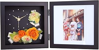 プリザーブドフラワーフォトクロック Arvo Deux 【オリジナルギフト工房 HappySmile】 (ブラウン×オレンジ)
