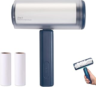 ほこり取りブラシ 粘着クリーナー 2in1 ペットブラシ 洋服ブラシ 犬 猫 抜け毛取り 多機能 両面使え 便利 お掃除に 花粉対策 静電除去 衣類 ソファー 寝具 車内 カーペット (粘着ローラー 3個付*60周巻) (ブルー)