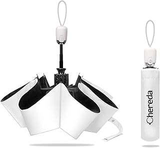 【強化版】日傘 折りたたみ傘 UVカット率99.9% 完全遮光 紫外線遮断 UPF50+ ワンタッチ自動開閉 耐風撥水 メンズ レディース 晴雨兼用 収納ポーチ付きChereda (ホワイト)